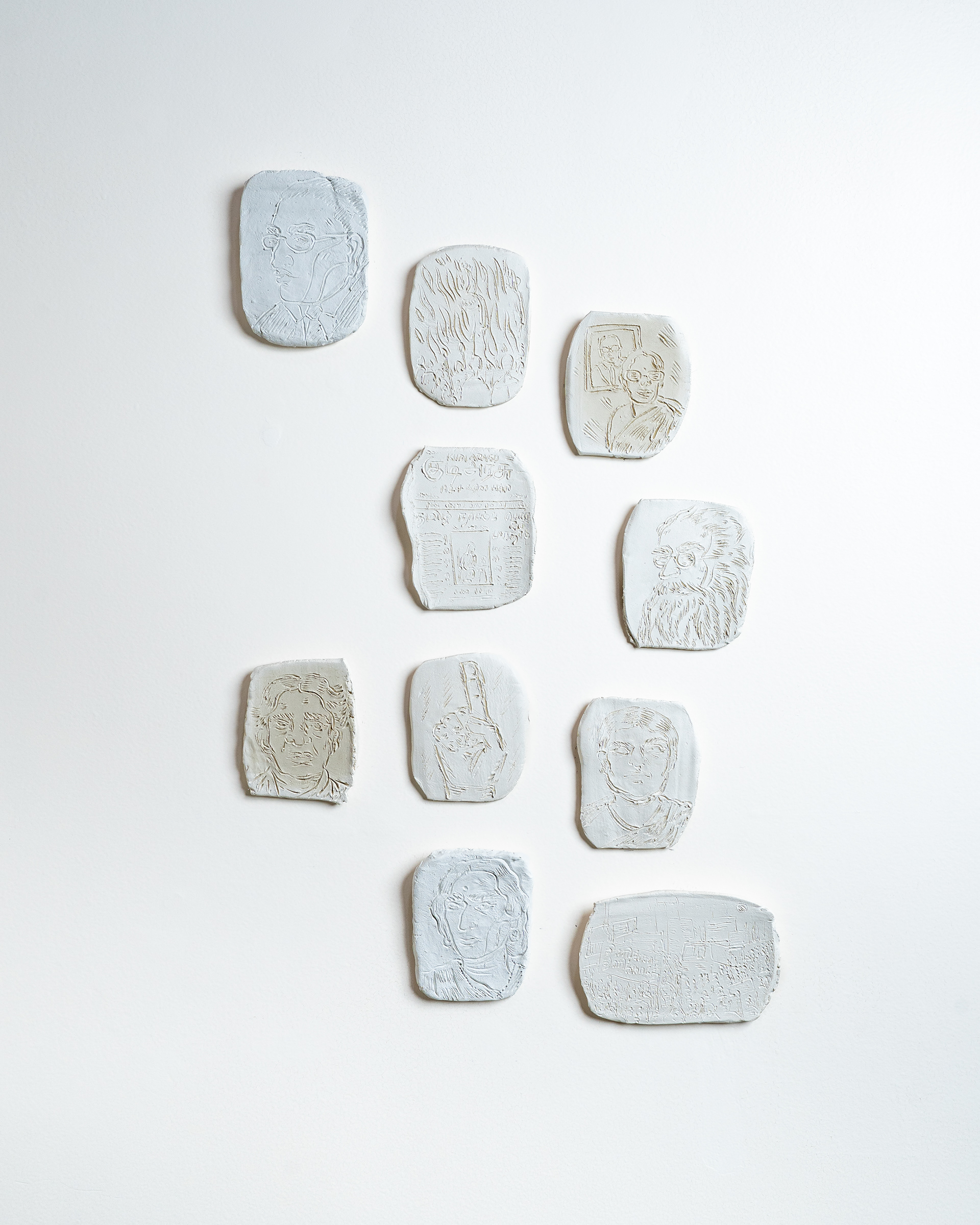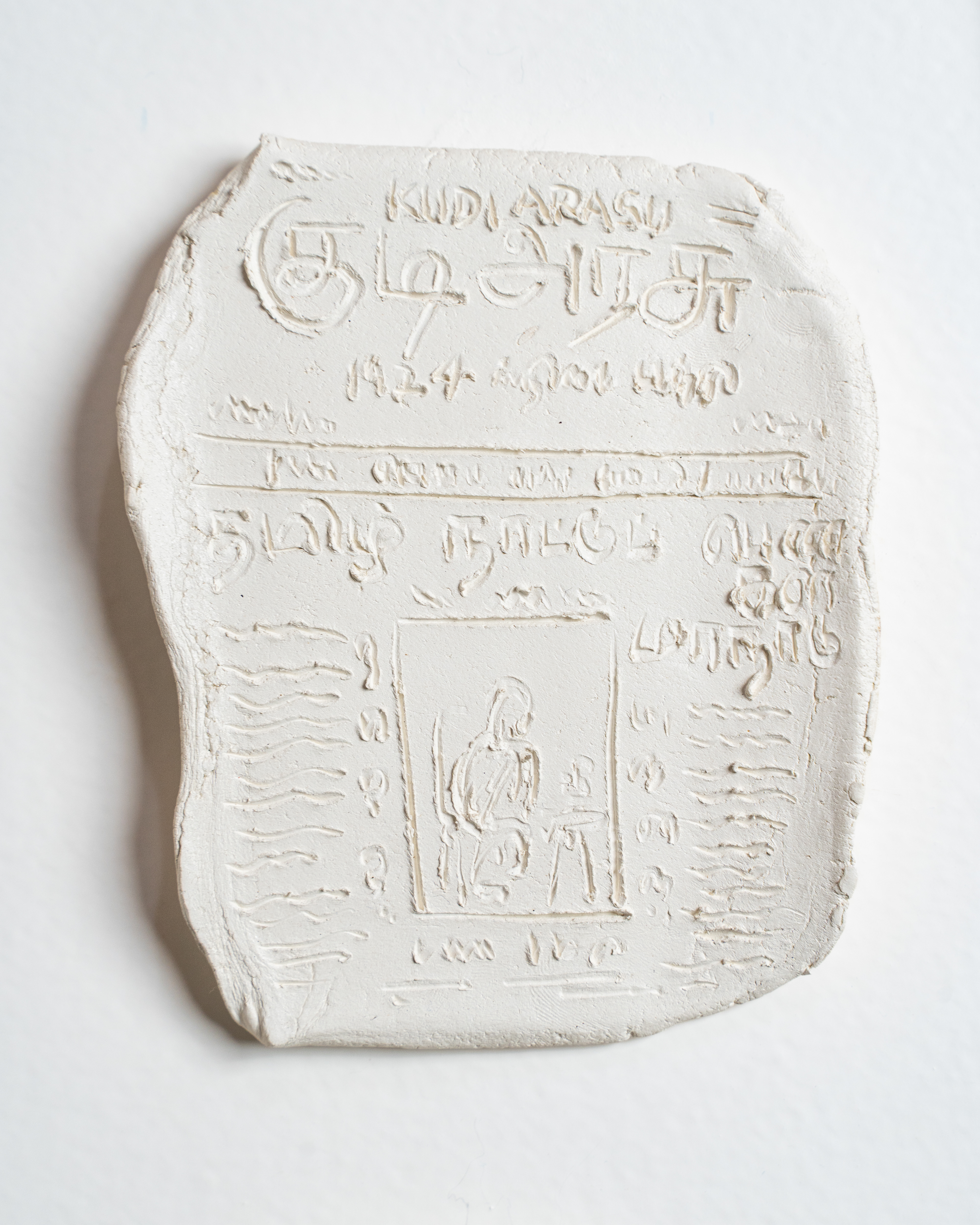 Self Respect Movement சுயமரியாதை இயக்கம் is a suite of nine clay tablets mapping pivotal moments within Periyar’s Self-Respect Movement in Tamil Nadu. Figures and events appear as fragments of a living archive: Periyar’s radical rationalism, the subversive Ravana Leela, the pages of Kudi Arasu, Ambedkar’s solidarity, and feminist leaders like Annai Meenambal and E.V.R. Nagammai. Together, these works reclaim erased histories, honoring voices of resistance and imagining futures beyond caste oppression.